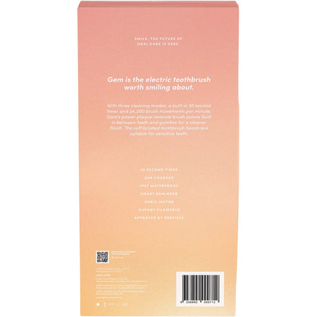 The GEM Electric Toothbrush Watermelon 1 provides a powerful clean to keep your teeth healthy. Its premium rotating motor ensures that your toothbrush removes more plaque and bacteria than manual toothbrushes, making sure your mouth stays healthy and fresh.