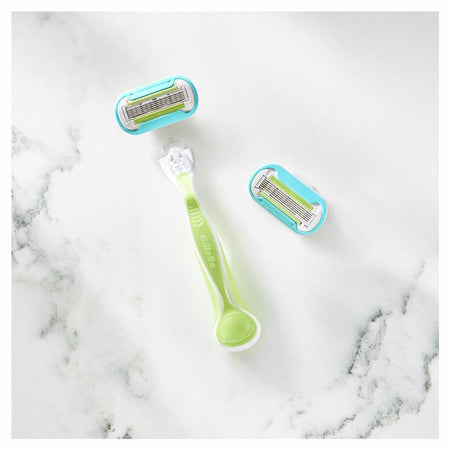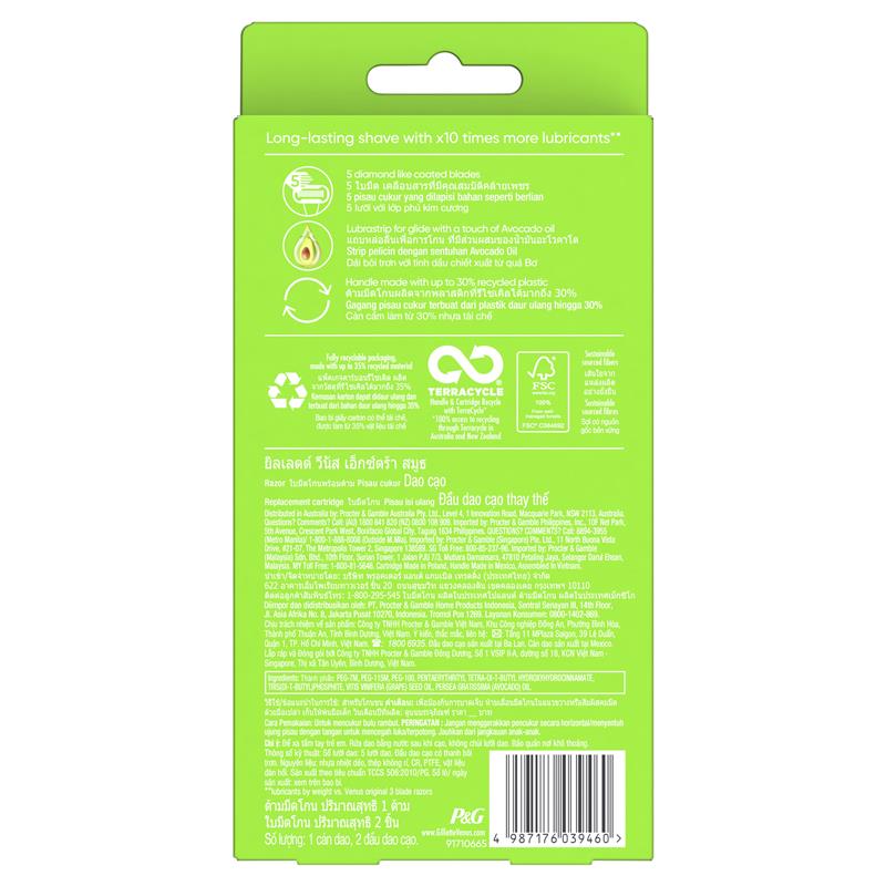 Gillette Venus Extra Smooth women's razors deliver a close, controlled shave. These razor refills have 5 diamond-like coated blades for an extra smooth shave that lasts. Each blade refill lasts up to one month (based on twice/week shave); just use and replace when you're ready for a new one. These female razor blades cut hair closer to the skin, for a longer-lasting smooth (vs Venus Smooth 3-bladed razor for women). The blade's water-activated ribbon of moisture helps protect it from nicks and cuts. These razor refills have a pivoting head that adjusts to your curves, including ankles and knees. No awkwardly angling your razor. This razor's handle is also made with up to 30% recycled plastic. Did you know that any Venus blade refill fits any Venus razor handle (except Simply Venus and Venus Pubic Hair Razor)? Shave your way without buying a whole new Venus handle.