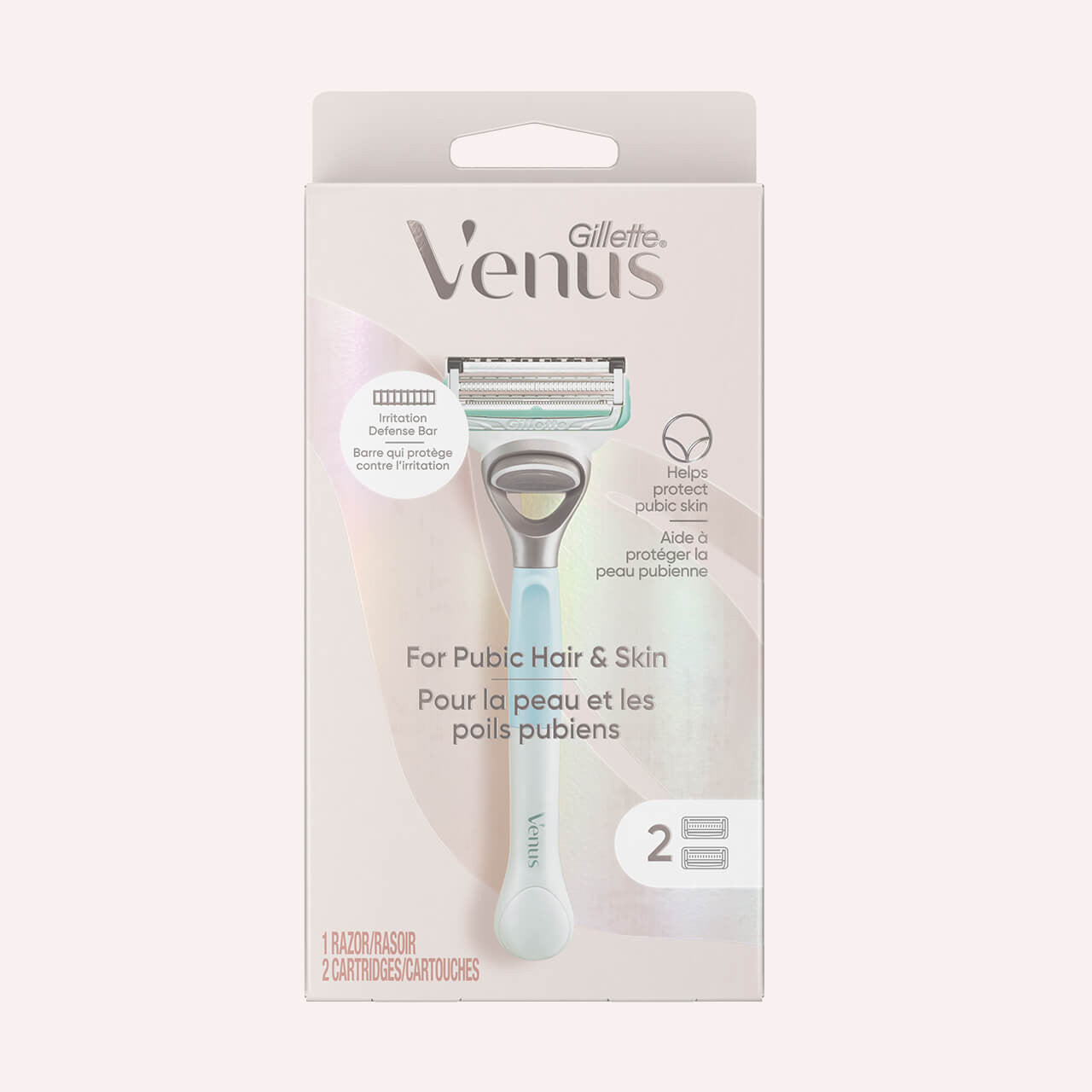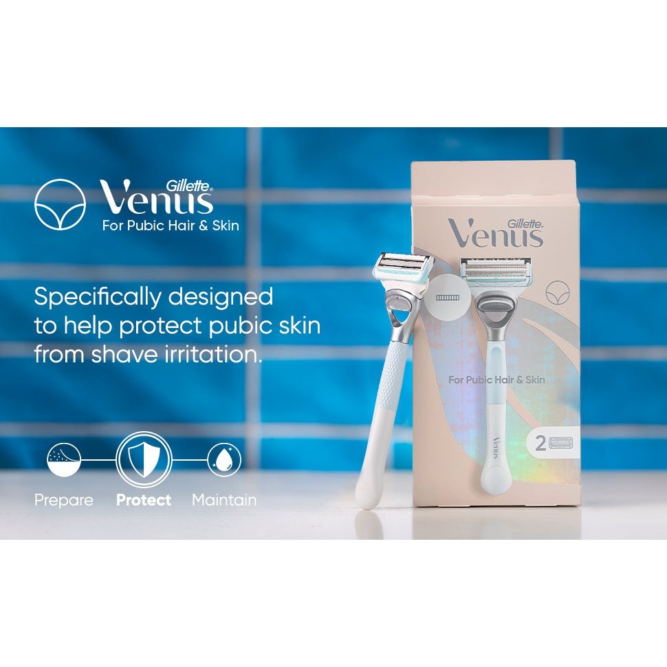 • For great results, use the entire Venus for Pubic Hair and Skin lineup to help prepare, help protect pubic skin from shave irritation, and maintain your pubic hair & skin.