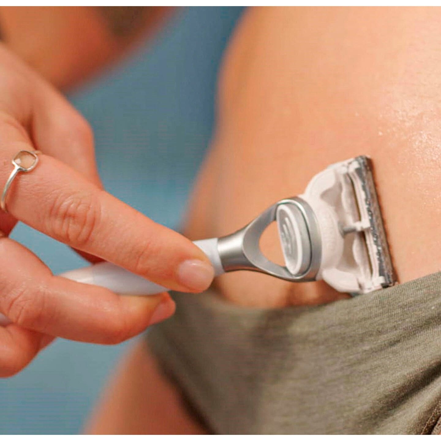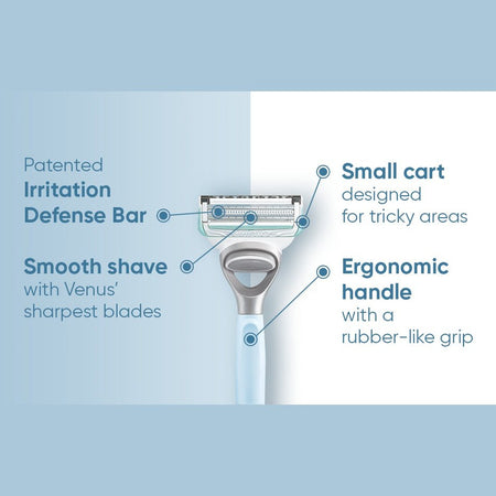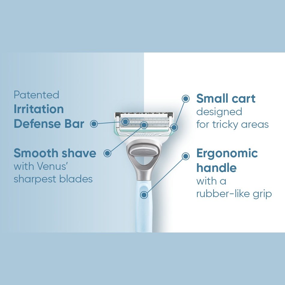 Gillette Venus Women's Bikini Razor For Pubic Hair & Skin with 2 Blade Refills. Blades are specifically designed to protect pubic skin from irritation. Don't settle for bumps, ingrown, and itch.* (*itch due to dry skin)