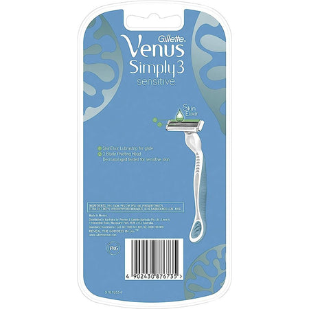 The Gillette Venus Simply 3 Sensitive Razor 4 Pack features three blades for a close, comfortable shave. The lubricating strip is enriched with aloe and helps protect your skin for a smooth shave. Perfect for sensitive skin, this razor is designed to protect against irritation for an effortless shaving experience.