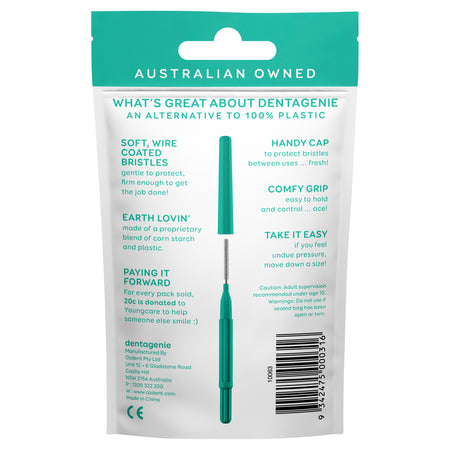 Dentagenie Dental Brushes are innovative, easy, gentle to use and great at removing food and plaque from between your teeth. Because they're Earth Lovin' made from plant-based materials reduced plastic or recycled plastic, they'll protect you as much as they do our planet.