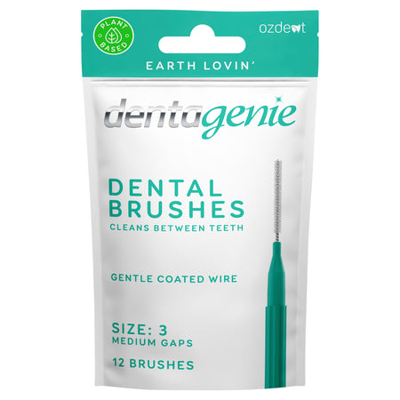 Dentagenie Dental Brushes clean between teeth. Size 3 for Medium Gaps. WHAT'S GREAT ABOUT DENTAGENIE? An alternative to 100% plastic.