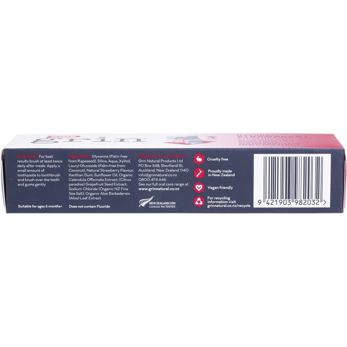 Aqua, Vegetable Glycerine, Silica, Organic Calendula Officinalis (Calendula) Extract, Organic NZ Fine Sea Salt, Organic Aloe Barbadensis (Aloe) Leaf Extract, Potassium Olivoyl Hydrolyzed Wheat Protein, Xanthan Gum, Natural Strawberry Flavour, Citric Grandis (Grapefruit Seed) Extract, Xylitol.GS17CPP
