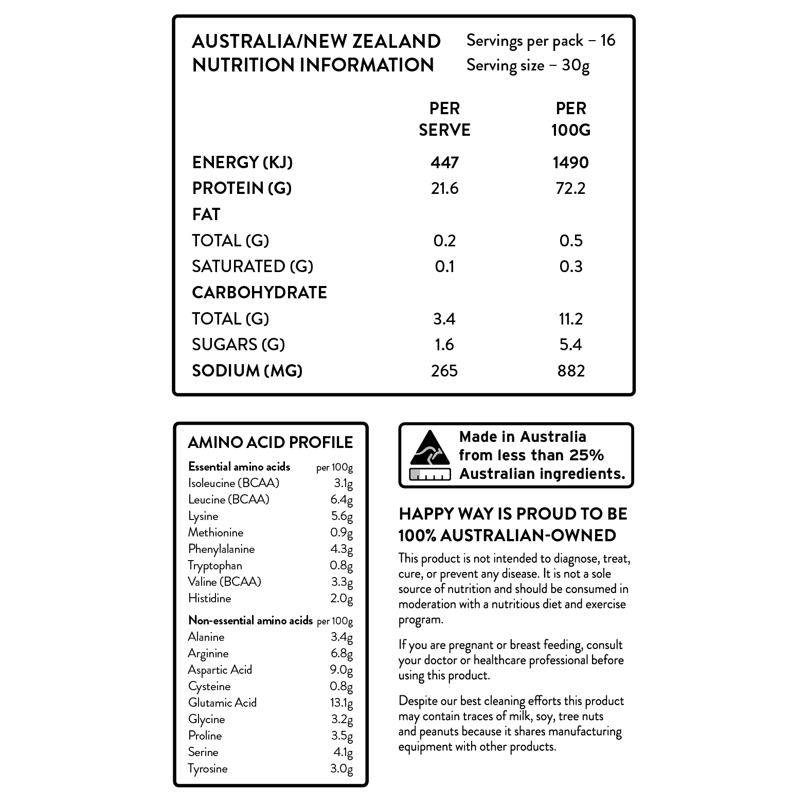 Combine two heaped tablespoons (30 g) with water or your milk of choice, mixing well in a shaker or blender to create a delicious shake or smoothie. Alternatively, add 30 grams to your morning oats, natural yoghurt or baked goodies. For optimal results, enjoy twice a day.