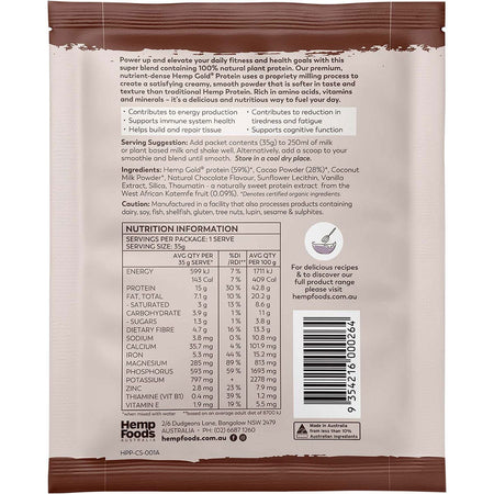 HEMP FOODS AUSTRALIA Organic Hemp Protein Chocolate 7x35g is a great choice for those looking for a nutritious, plant-based snack. It provides the ideal balance of amino acids and essential fatty acids to promote general wellness. Each pack comes with 35g of organic hemp protein, offering a nutritionally complete, vegan snack.