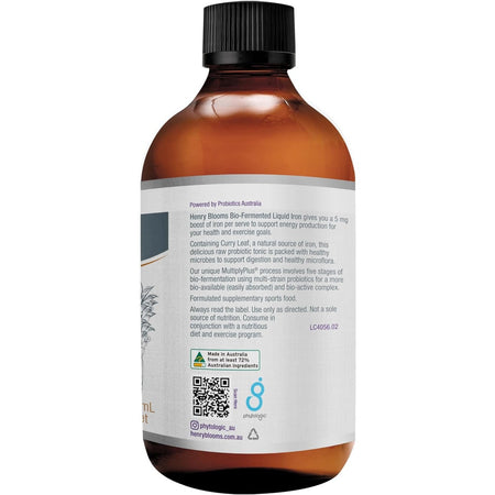Henry Blooms Bio-Fermented Liquid Iron gives you a 5mg boost of iron per serve to support energy production for your health and exercise goals. Containing Curry Leaf, a natural source of iron, this delicious raw probiotic tonic is packed with healthy microbes to support digestion and healthy microflora. Ther unique MultiplyPlus® process involves five stages of bio-fermentation using multi-strain probiotics for a more bio-available (easily absorbed) and bio-active complex.