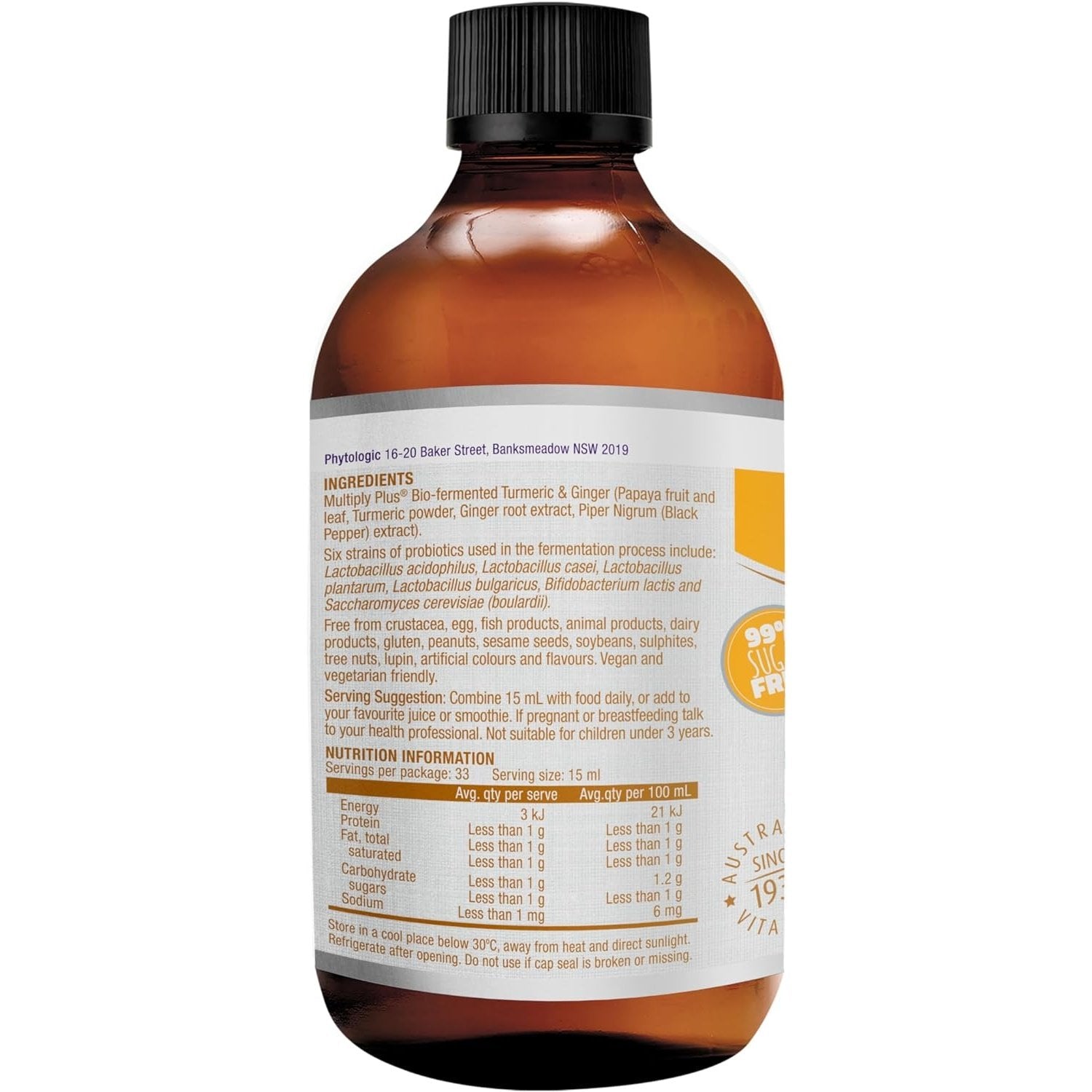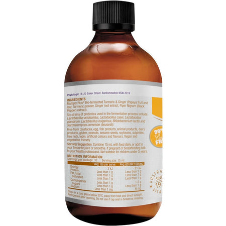 Henry Blooms Bio-Fermented Turmeric with Ginger and Black Pepper combines the superfood benefits of Turmeric in a raw probiotic concentrate to support friendly bacteria for a healthy, happy gut and is 99% sugar free, gluten free and vegan friendly. This bio-fermented concentrate contains Australian Certified Organic Turmeric, well known for its anti-inflammatory and health enhancing properties, combined with Ginger and Black Pepper to enhance absorption. The unique MultiplyPlus® process involves five stages of bio-fermentation using multi-strain, gut-loving probiotics, resulting in a more bio-available (easily absorbed) and bio-active complex.