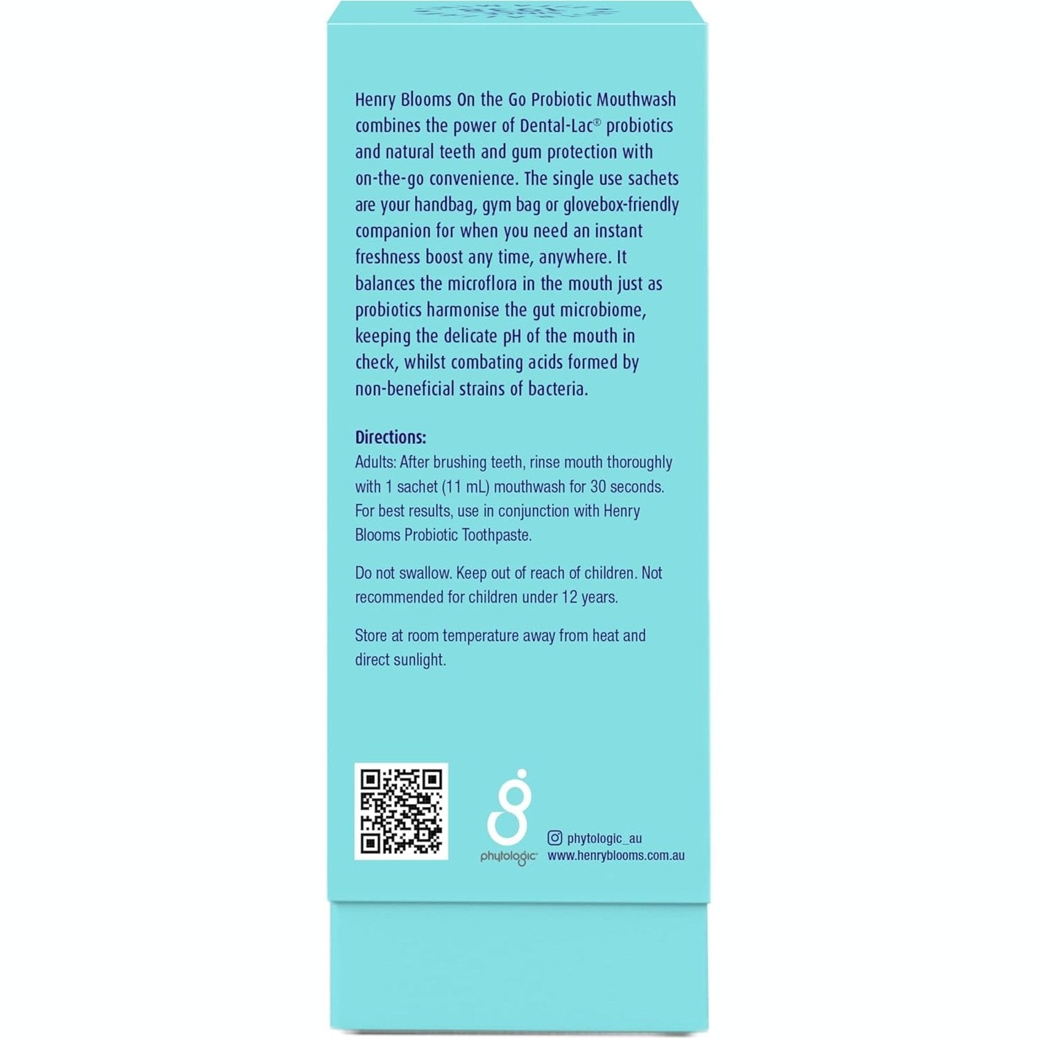 Henry Blooms On the Go Probiotic Mouthwash combines the power of Dental-Lac® probiotics and natural teeth and gum protection with on-the-go convenience.The single use sachets are your handbag, gym bag or glovebox-friendly