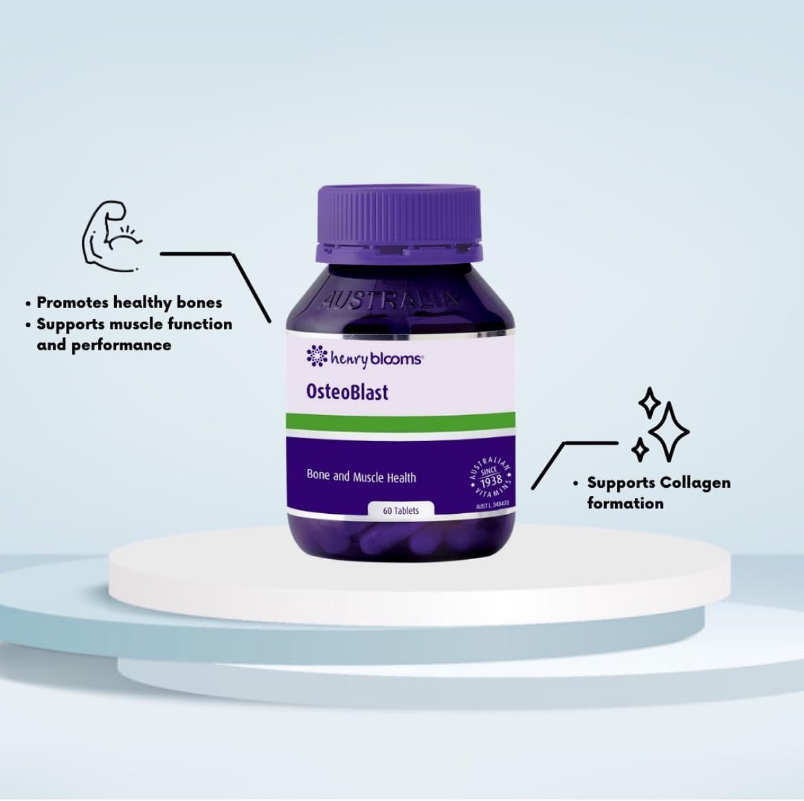 Henry Blooms OsteoBlast is formulated with Calcium and nine additional co-factors to help:
