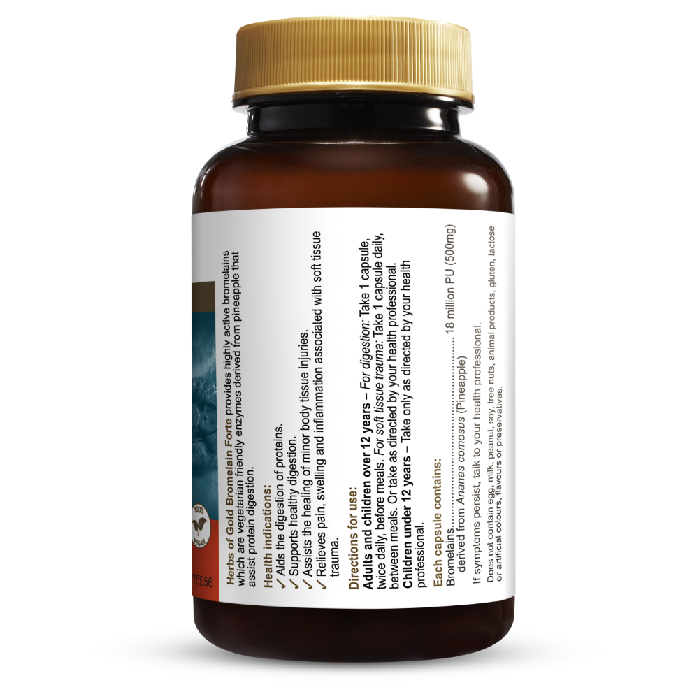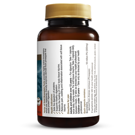 Bromelains 18 million PU (500mg), derived from Ananas comosus (Pineapple).