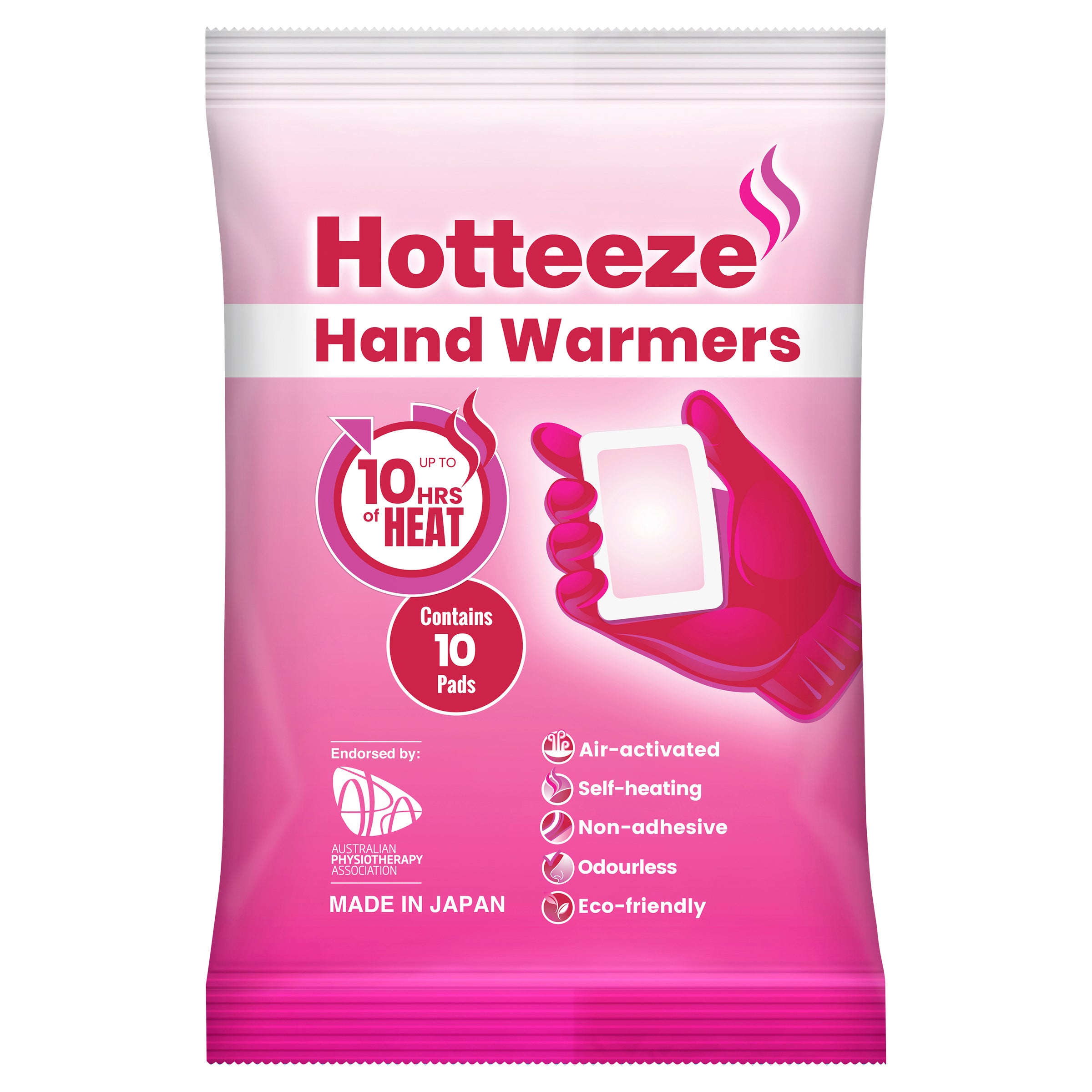 - Contains 10 individually-sealed Hotteeze Hand Warmer pads.