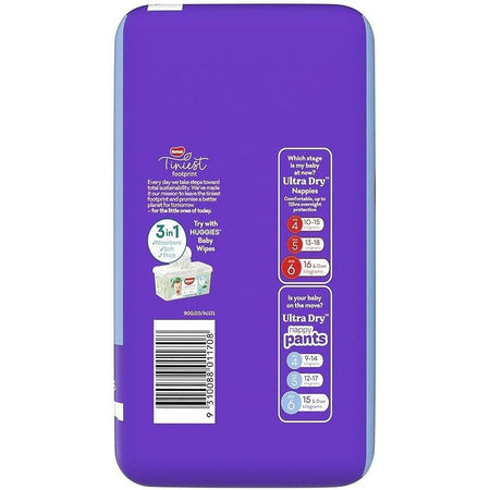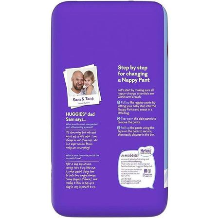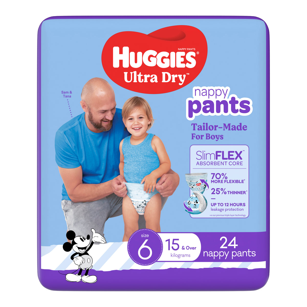 Huggies Nappy Pants are Soft and stretchy 360 degree waistband provides a comfortable and secure fit. With easy off tear sides with disposable tape on the back makes for easy removal and disposal. Huggies Nappy Pants provide to 12 hours leakage protection perfect both as a day and overnight nappy. Easy to pull up and down with fun Disney designs to help aid with toilet training. Tailored absorbency in the front where boys need it the most. Huggies Ultra Dry Nappy Pants are designed to make change time easier whether your active, wriggly baby is laying down or standing up. A pull-up style pant with a 360 degree soft and stretchy waistband which easily tears open on the sides for easy removal and disposal. A pull-up style pant with fun Disney designs help aid with toilet training or potty training your little one. Huggies Ultra Dry Nappy Pants have up to 12 hours leakage protection making it great as both a day or night nappy.