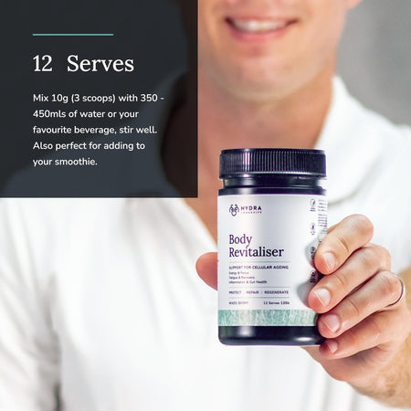 Body Revitaliser is formulated by a Clinical Naturopath and Anti-Ageing & Longevity specialist with 30 years of experience successfully treating thousands of patients with exactly these kinds of complaints. Make today the day you have a body full of energy, a brain that’s sharp and focused and a nervous system that’s calmer and more stable.