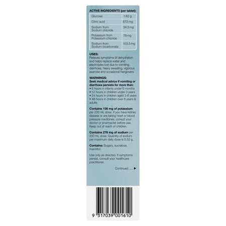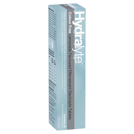Hydralyte Effervescent Electrolyte Tablets Colour Free Lemonade Flavoured relieves symptoms of dehydration and helps replace water and electrolytes lost due to vomiting, diarrhoea, heavy sweating, vigorous exercise and occasional hangovers.