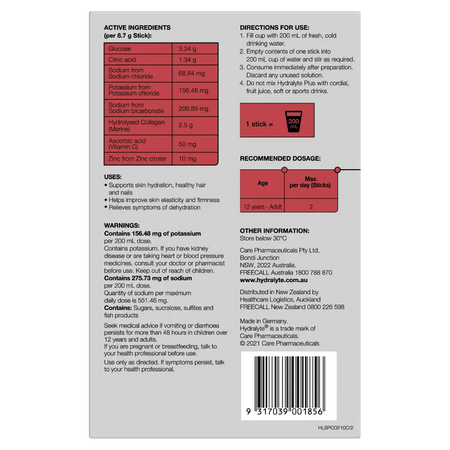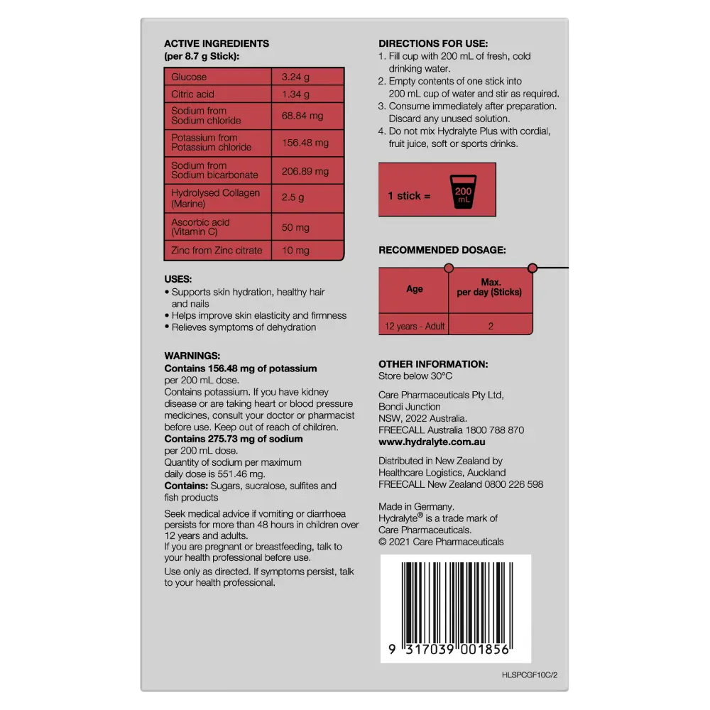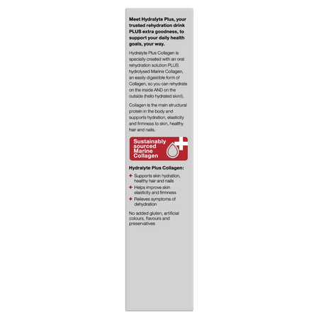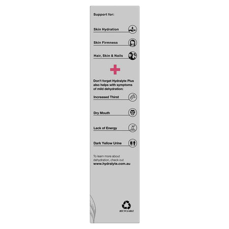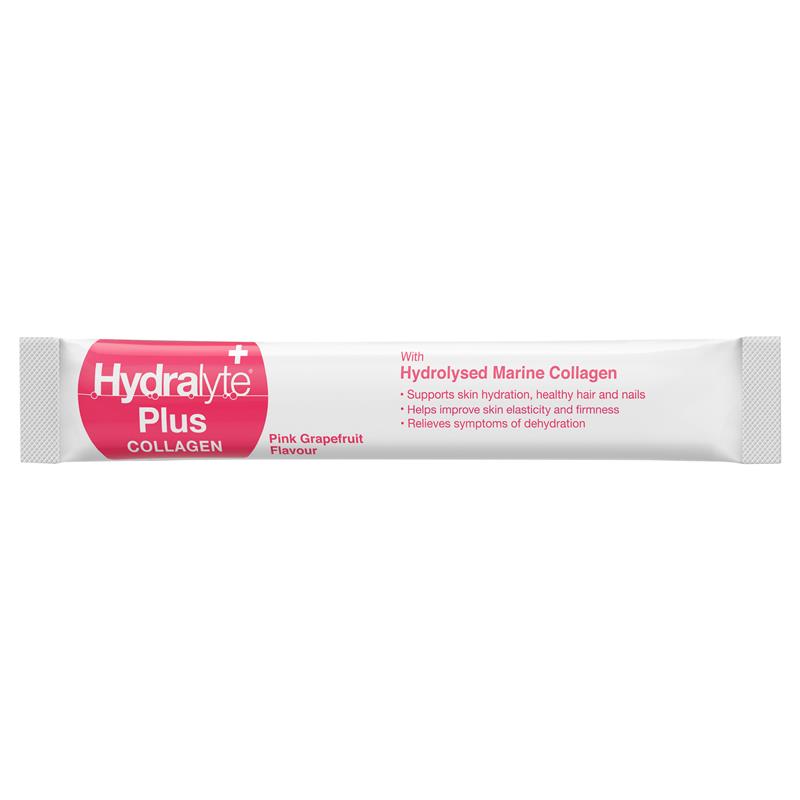 Hydralyte Plus Collagen with Hydrolysed Marine Collagen - Pink Grapefruit Flavour - Supports skin hydration, healthy hair and nails. Helps improves skin elasticity and firmness. Relieves symptoms of dehydration.