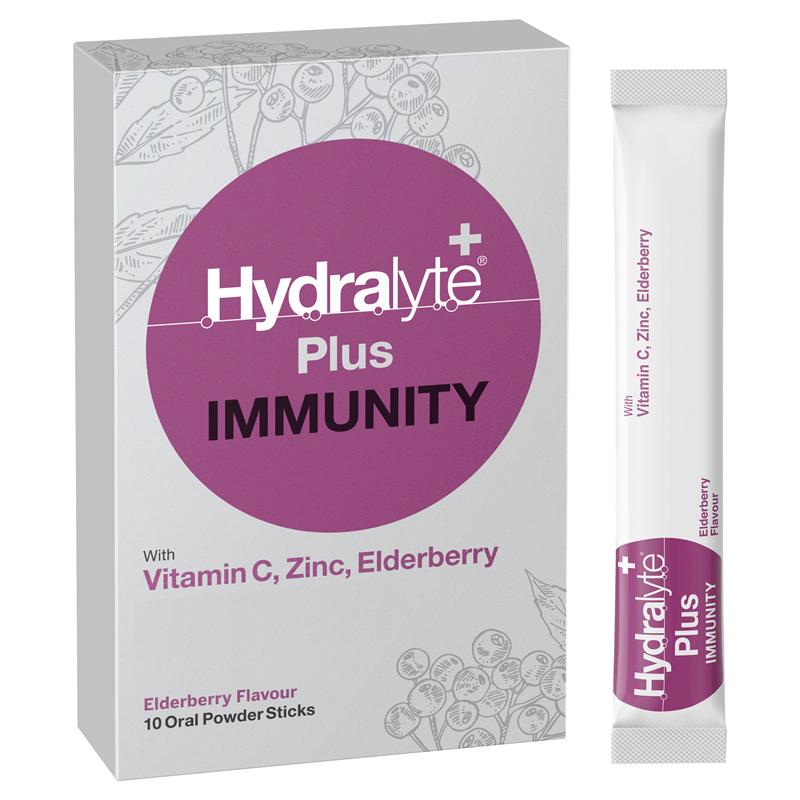 Meet Hydralyte Plus, your trusted rehydration drink PLUS extra goodness, to support your daily health goals, your way.Hydralyte Plus Immunity is specially created with an oral rehydration solution PLUS powerhouse ingredients Vitamin C, Zinc and Elderberry. It helps support your immune system to fight illness with the added benefit of rehydrating your body at the same time. Your immune system does an incredible job protecting the body against unwanted germ invaders. Lack of sleep, poor diet, hygiene and stress can also affect how it performs.