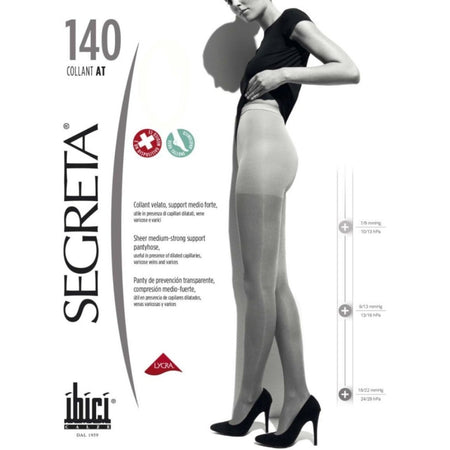 Ibici Segreta 140 Waist High Medical Compression Pantyhose 18-22 mmHg Closed Toe, referred for prevention and treatment of varicose veins, venous stasis, swollen ankles and associated vascular conditions.