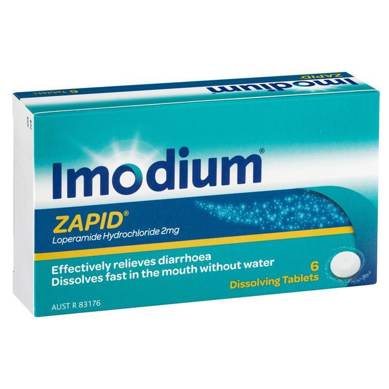 IMODIUM Zapid treats bouts of diarrhoea effectively. IMODIUM Zapid melts on your tongue discreetly with no need for water, making them perfect for when you're on the go.Use Imodium Zapid for: Convenient relief from the symptoms of diarrhoea and restoration and restoration of normal bowel function.