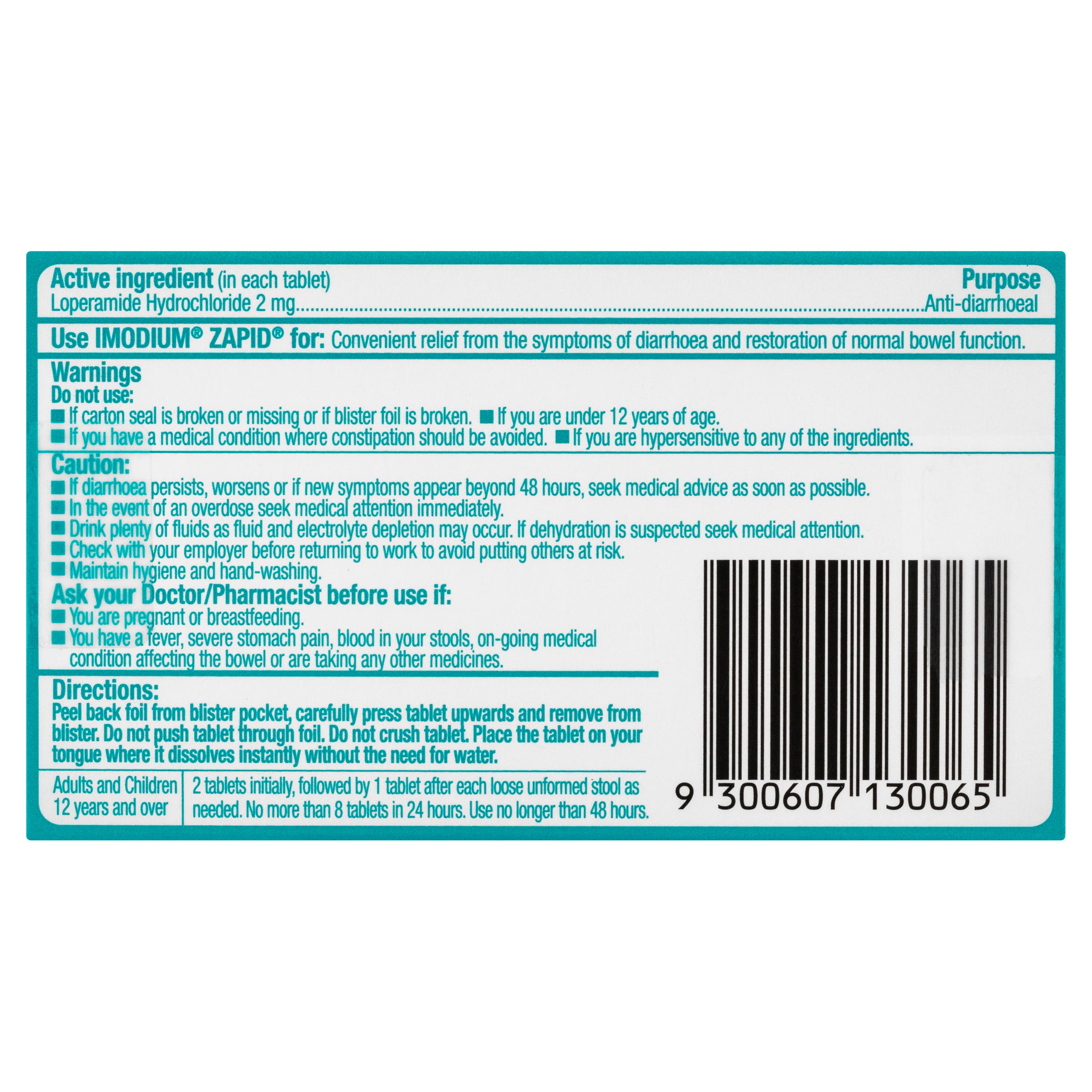 Imodium Zapid Dissolving Tablets effectively relieve diarrhoea and dissolve quickly in the mouth without water.