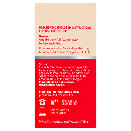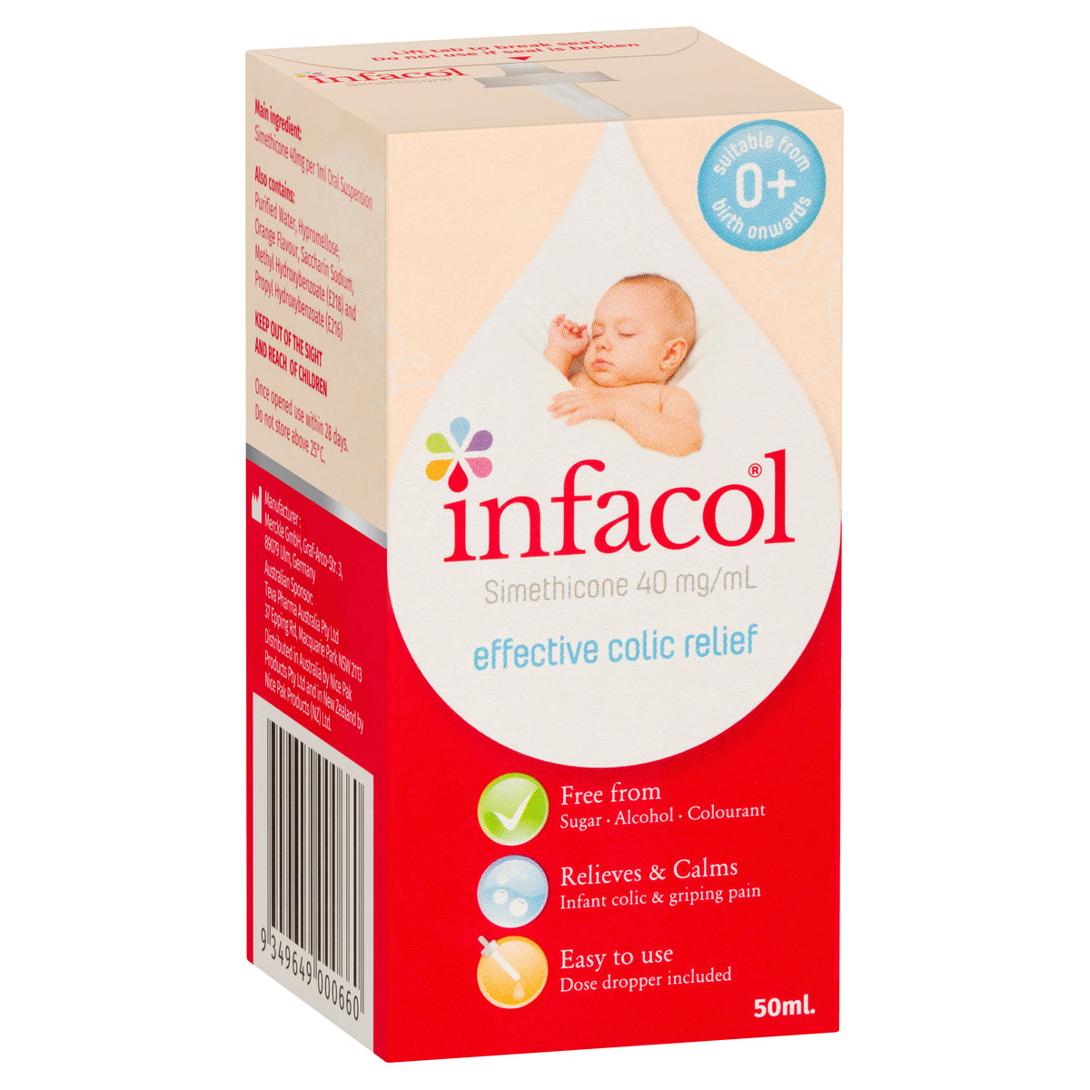 Infacol Simethicone 40mg relieves and calms infant colic & griping pain. Free from sugar, alcohol and colourant. Also, it is easy to use (Dose dropper included).