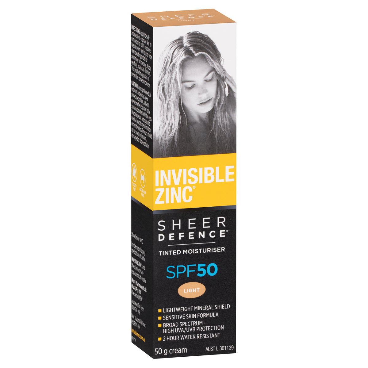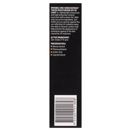 Invisible Zinc SPF 50+ Sheer Defence Tinted Moisturiser Light 50g