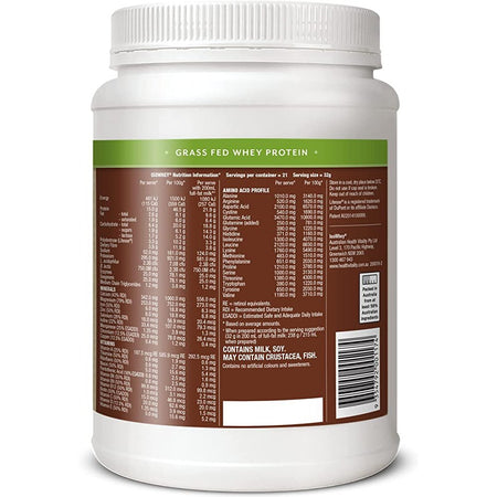 15g of pure whey protein, sourced from grass-fed cows - premium quality and specific ratio of whey protein concentrate and whey protein isolate.