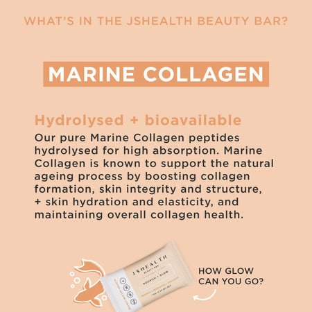 - Pure Marine Collagen peptides - This bar includes the age-defying and glow-boosting benefits of Marine Collagen for inside-out beauty.