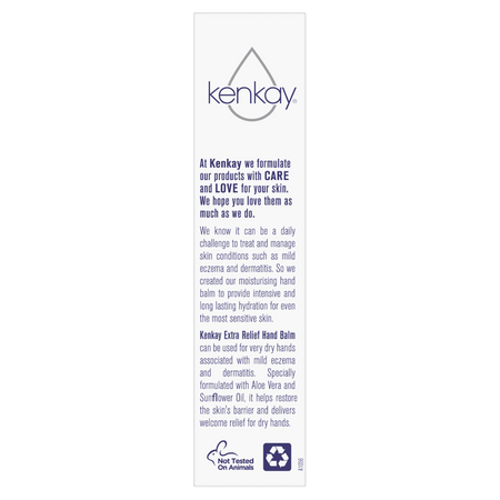 Kenkay Extra Relief Hand Balm can be used for very dry hands associated with mild eczema and dermatitis. Specially formulated with Aloe Vera and Sunflower Oil, it helps restore the skin's barrier and delivers welcome relief for dry hands.