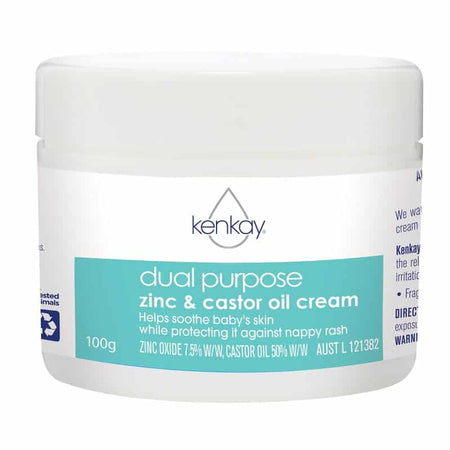 Kenkay Dual Purpose Zinc & Castor Oil Cream is a soothing and protective cream used for the relief of the symptoms of nappy rash, mild eczema, dermatitis, and minor skin irritations. This dual purpose cream is also water repellent.