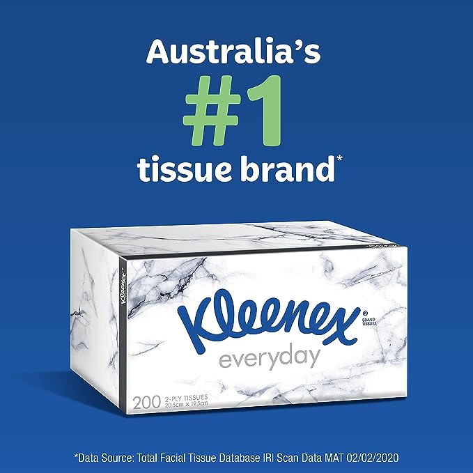 Kleenex Everyday Tissues are for everyday laughs, tears, sniffles, and family moments.2-ply tissues, 200 sheets per box, 20.5 cm x 19.5 cm
