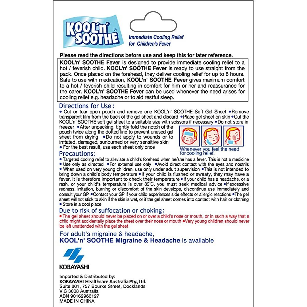Kool n Soothe Kids Fever Relief 6 Sheets
