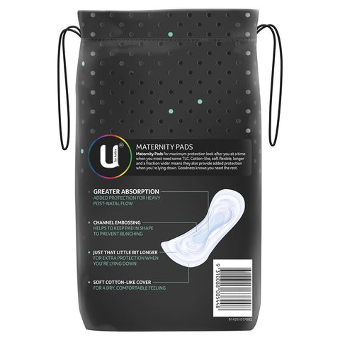 Specifically designed to provide added protection for heavy post-natal flow. U by Kotex® Maternity Pads for maximum protection are looking after you at a time when you most need some TLC. Cotton-like, soft, flexible, longer and a fraction wider means they also provide added protection when you're lying down. Goodness knows you need the rest.