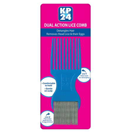 It is a durable stainless steel comb that can be repeatedly sterilised and will not bend or erode. It comes with a bonus magnifier to help detect lice. Use with KP24 Lice Egg Remover or KP24 Combing Solution for best results.