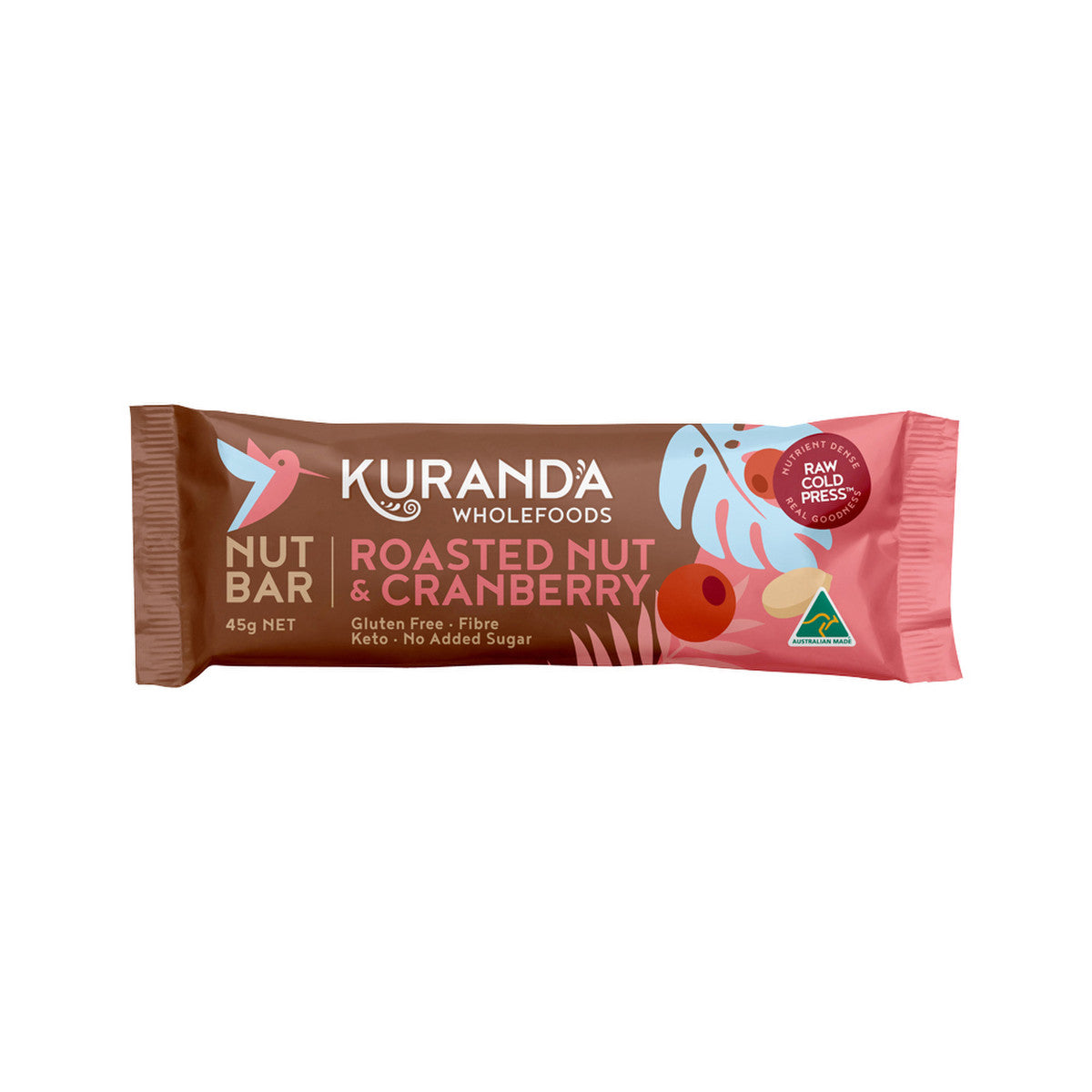 Kuranda Wholefoods Gluten Free Nut Bars Roasted Nut & Cranberry 45g(Pack of 16)