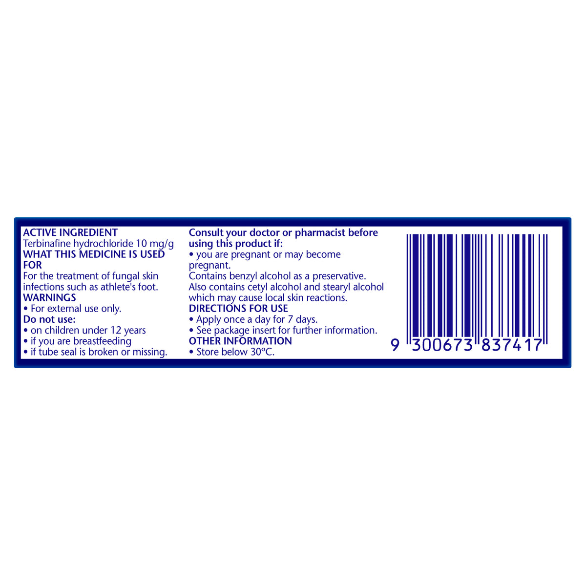 Active Ingredients: Terbinafine Hydrochloride 10mg/g