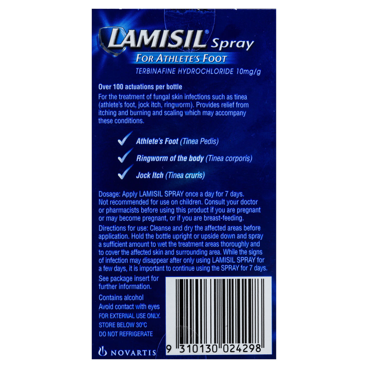 Lamisil Spray should only be applied to skin on the outside of the body. Remember to thoroughly wash your hands after application to avoid infecting other parts of your body."