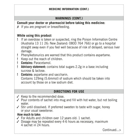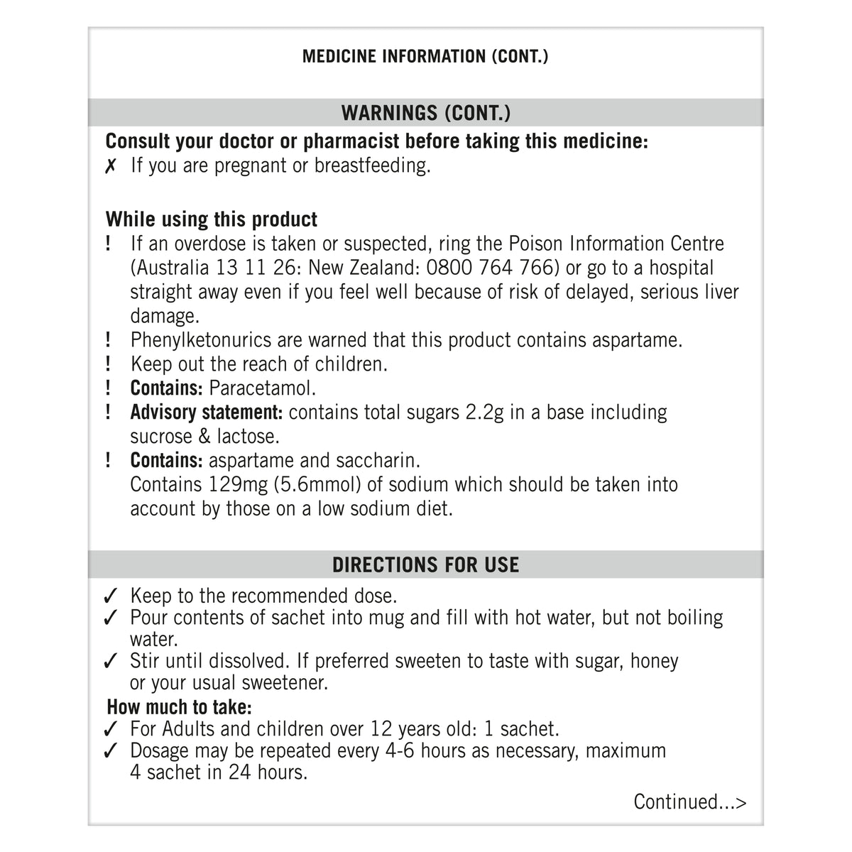 Use this Lemsip for temporary relief of: Blocked or Runny Nose, Headache & Fever, Sore Throat, Body Aches & Pains, Non-drowsy.
