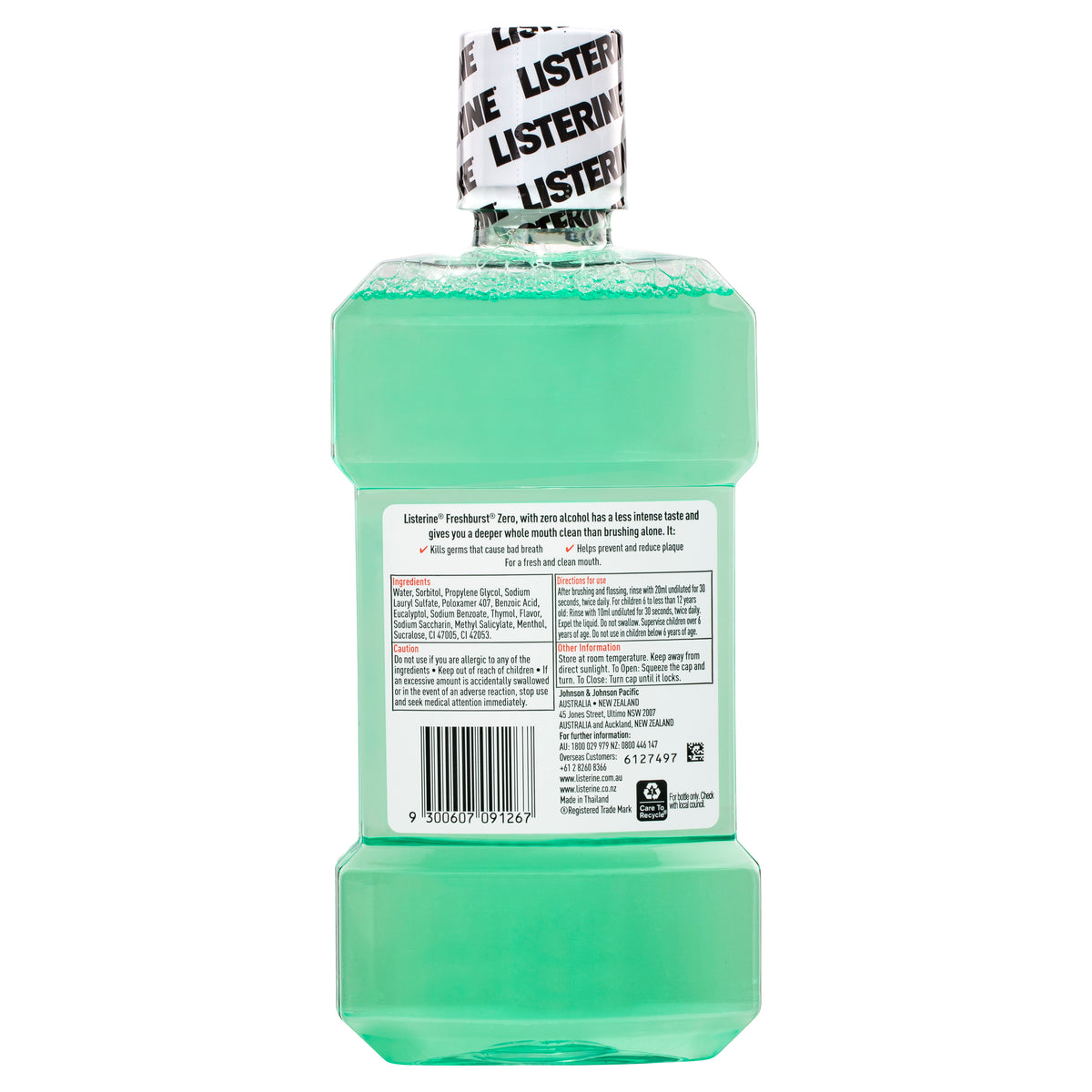 Protect your mouth from germs and get fresh breath with Listerine Freshburst Zero Antibacterial Mouthwash for bad breath. The great-tasting Freshburst spearmint flavour of this mouthwash leaves your mouth feeling clean and fresh, and is made with zero-alcohol for a less intense taste. It kills 99.9% of germs that cause bad breath, and plaque for a fresher and cleaner mouth than brushing alone. Brushing and flossing alone only reaches 25% of your mouth, incorporating Listerineas your third step helps to kill germs in virtually 100% of the mouth to provide that long-lasting fresh breath. Achieve maximum results by rinsing with this refreshing oral rinse for 30 seconds twice a day, both morning and night, for up to 24-hour germ protection. Listerine Dynamite Against Germs.
