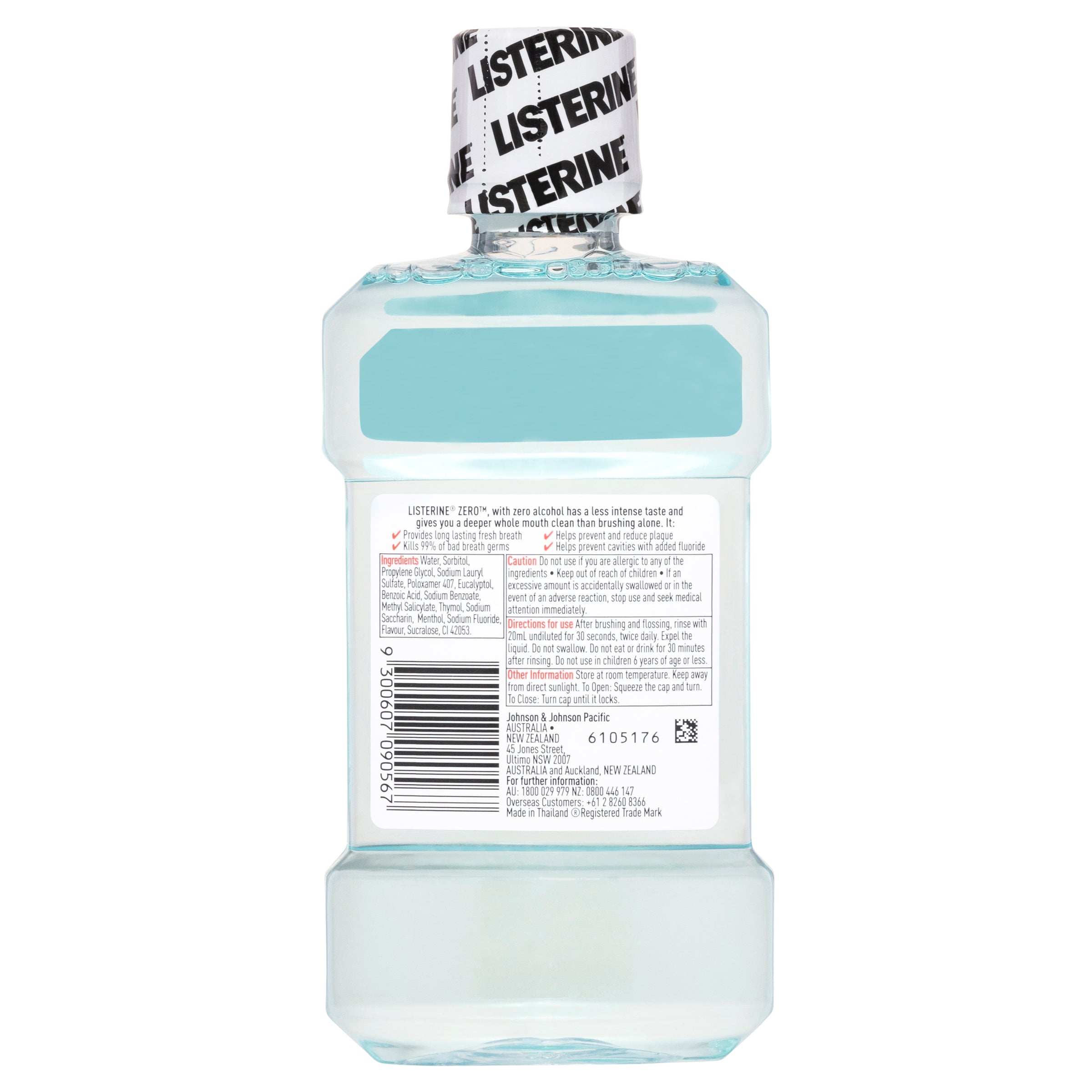 Listerine Zero, with zero alcohol has a less intense taste and gives you a deeper whole mouth clean than brushing alone. It:- Provides long lasting fresh breath.