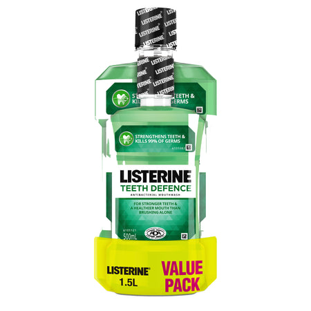 Listerine Teeth Defence Mouthwash specifically formulated to strengthen the tooth enamel and protect against decay. It:- Contains fluoride for a deeper whole mouth clean than brushing alone.