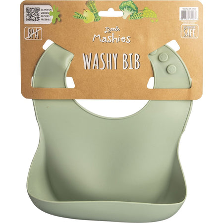 LITTLE MASHIES Silicone Washy Bib Olive 1