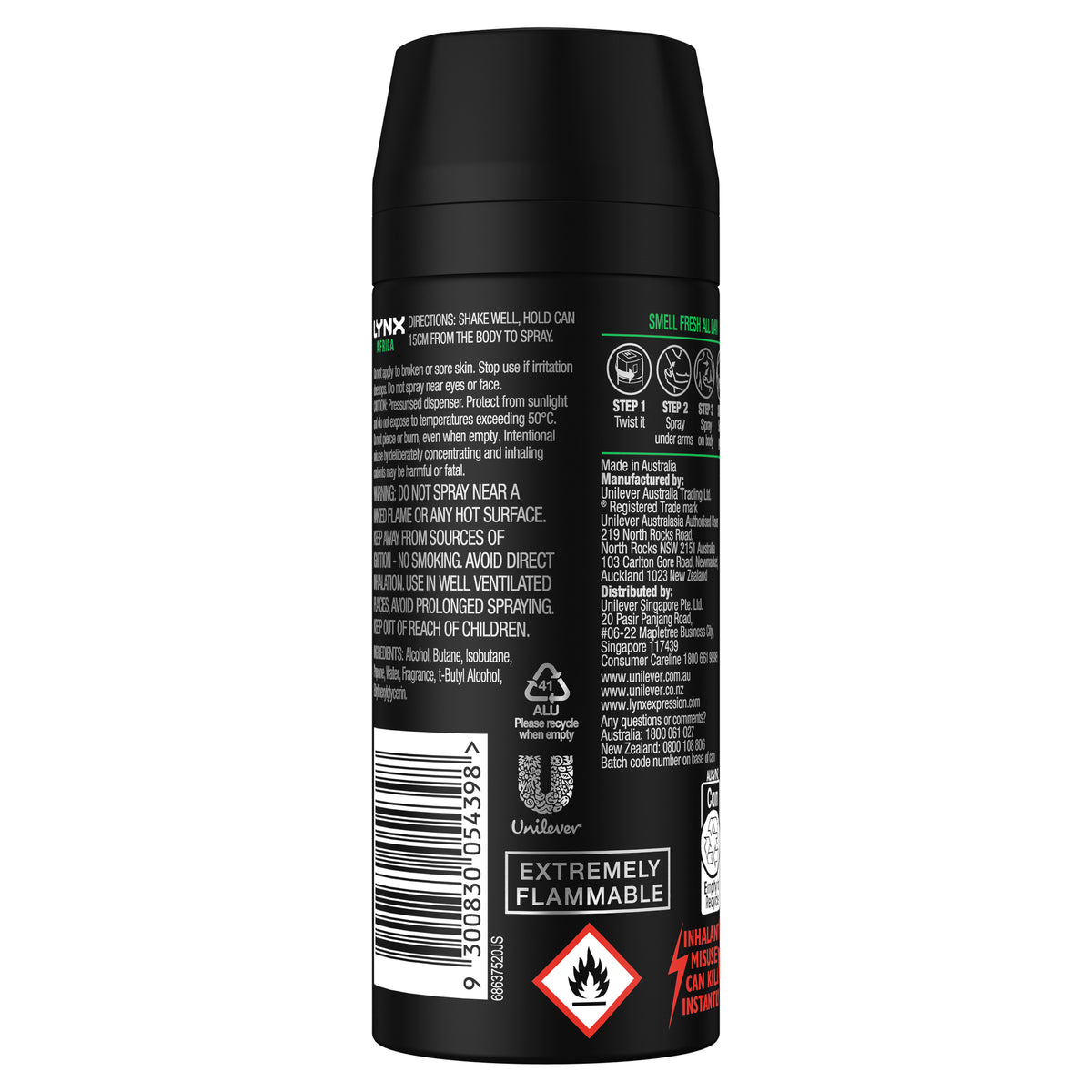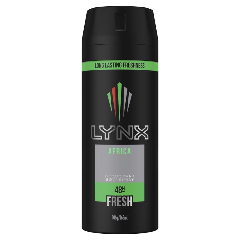 LYNX Africa Aerosol Body Spray combines an exotic mix of warm African spices and aromas. This classic fragrance is designed to keep you cool no matter where the heat's coming from. LYNX Africa has always been our most popular fragrance. Our body sprays are designed to give you confidence. All day long. So you can forget about odour and focus on what really matters. And that's you being, well, you. To get the most from your product, shake the can well and hold 15cm away from skin. Spray on key areas of the body - underarms and upper body for great protection from style threatening odour to feel fresh and confident. Take a look at the full range of antiperspirants on our website http://www.lynxexpression.com/. Lynx is committed to producing styling & grooming products that help guys look better, smell better and feel more confident when taking on the world. We exist to help Australian guys express themselves authentically. Follow @LYNXAUSNZ for Expression Series updates plus news on events and giveaways using hashtag #FINDYOURMAGIC. Also available in gift packs to give to someone special as a Christmas present, Birthday present, for Father's day or any other special occasion to celebrate each other or yourself.Boxed Contents: 165 ML