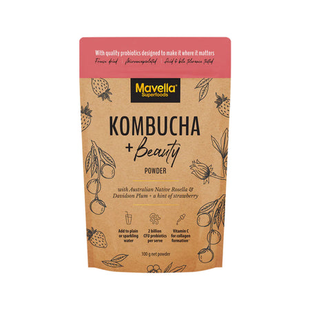 Mavella Superfoods Kombucha + Beauty Powder with Australian Native Rosella & Davidson Plum & Strawberry 100g