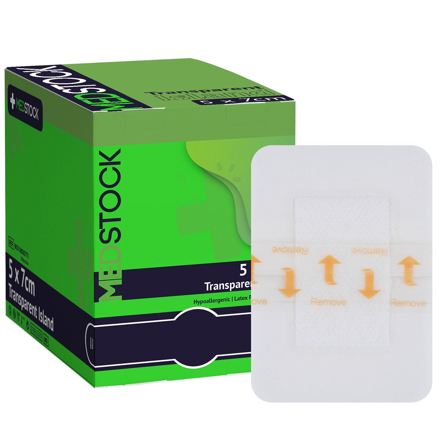 MEDSTOCK Transparent ISLAND DRESSING offers an effective barrier to wound contamination and assists with optimal moist wound healing. This five centimeter by seven centimeter dressing is ideal for treating medium wounds, keeping the wound clean and protecting it from external forces. The 100-pack provides ample amounts of dressing for use.