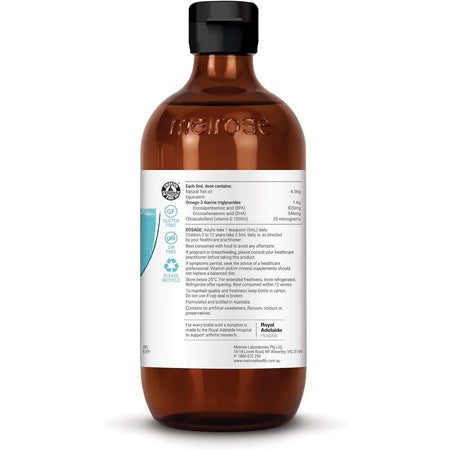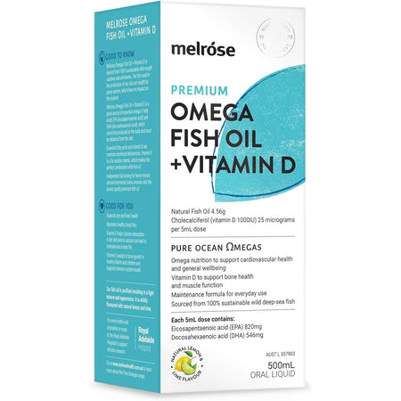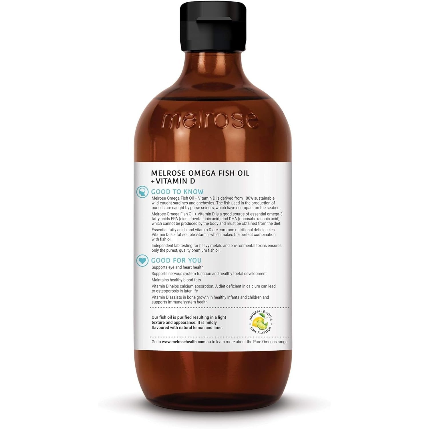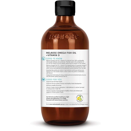 Melrose Omega Fish Oil + Vitamin D is a good source of essential omega-3 fatty acids EPA (eicosapentaenoic acid) and DHA (docosahexaenoic acid), which cannot be produced by the body and must be obtained through diet.