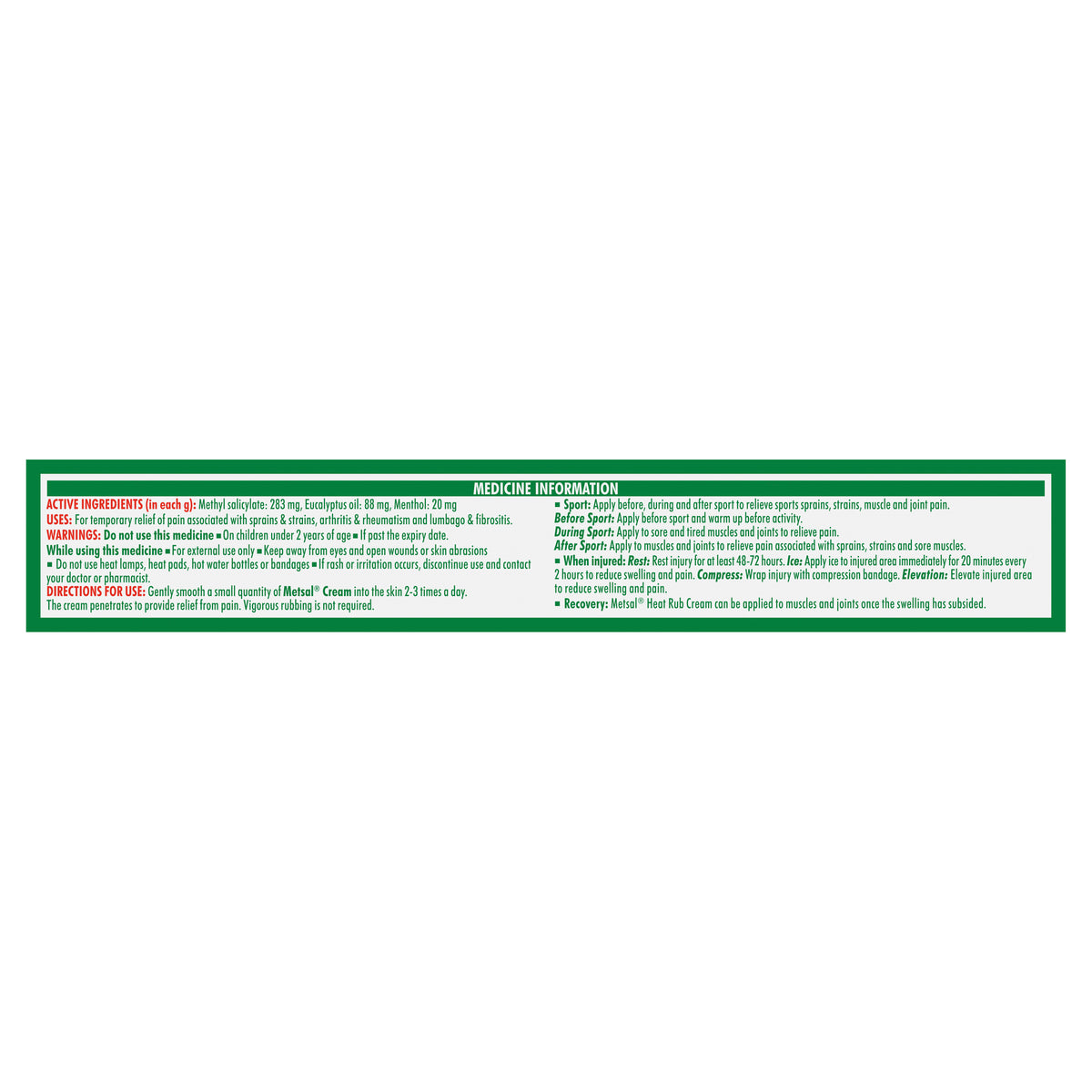 Gently smooth a small quantity of Metsal™ Cream into the skin 2-3 times a day. The cream quickly penetrates to provide rapid relief from pain.