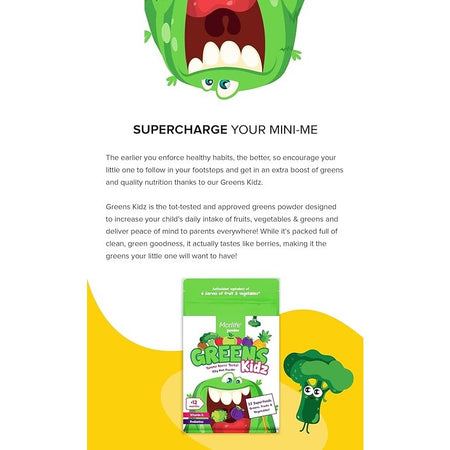 Greens, Fruits & Vegetables (48%*) (Apple, Pineapple, Pear, Raspberry, Alfalfa+, Broccoli Sprout, Buckwheat Lettuce, Lemon, Lime, Acai, Chlorella+, Spirulina+, Nettle+, Peppermint+, Kale+, Matcha Green Tea+, Celery, Spinach+, Parsley, Cucumber), Magnesium Citrate, Potassium Citrate, L-Glutamine, Calcium Citrate, Natural Fruit Flavours, Extracts (Dandelion Leaf, Eleuthero, Turmeric, Spirulina, Ashwagandha, Green Tea, Rosemary, Aloe Vera, Gardenia, Black Pepper), Magnesium Gluconate, Prebiotic Fibre (Apple, Acacia), L-Alanine, Stabiliser (Xanthan Gum), L-Histidine, Probiotics (Lactobacillus acidophilus, Bifidobacterium lactis, Bifidobacterium bifidum, Bifidobacterium longum), Potassium Ascorbate, Acidity Regulator (Citric Acid), Zinc Gluconate, Ferrous Fumarate (Iron), Manganese Citrate, Seleno Methionine, Plant Vitamin D, Chromium Picolinate.