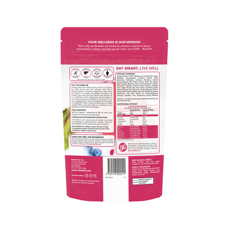 Feeling under the weather? Berry Clean Liv’a Detox® can help deliver you from previous sinful diet & lifestyle choices & revitalise sluggishness. Berry Clean Liv’a Detox® is a crafted naturopathic formulation that protects your cells from free radicals with Vitamins B2 & C, Selenium, and zinc. Experience reduced fatigue & normalized energy with Vitamins C, B2, B6 & B12, plus key supporting amino acids & 11 potent herbal extracts, including Milk Thistle, Turmeric and rosemary for holistic support. With a juicy berry taste, it’s a delicious way to get back on the wellness bandwagon.