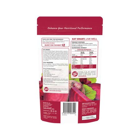 Morlife’s Certified Organic Beetroot Powder (Beta vulgaris) is the perfect superfood to enrich and visually transform your smoothies, bliss balls, cooking & baking. Boasting a brilliant red hue, folate for energy support# and bursting with antioxidants, our 100% pure beetroot powder has a sweet, earthy taste making it easy to incorporate into everyday dishes. Naturally gluten-free and suitable for our vegan friends, this superfood is almost too good to beetroot!